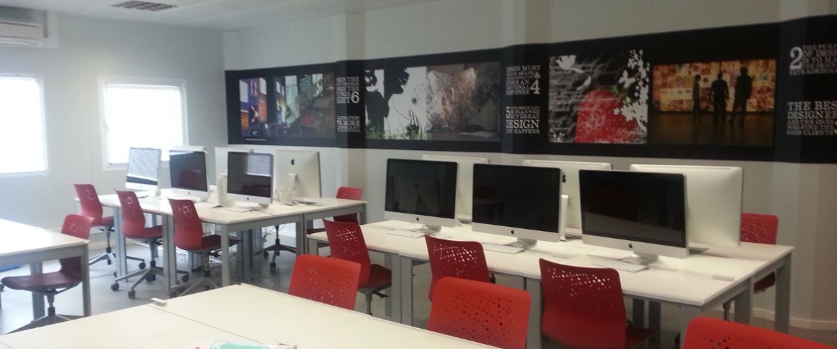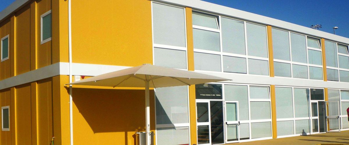 Instalação modular para salas de aula provisórias do ensino superior.