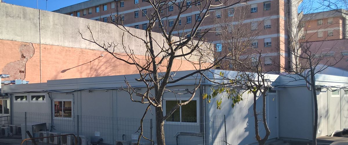 Instalação provisória composta por 32 módulos da gama Advance para ampliação das urgências hospitalares num período de picos de afluência.