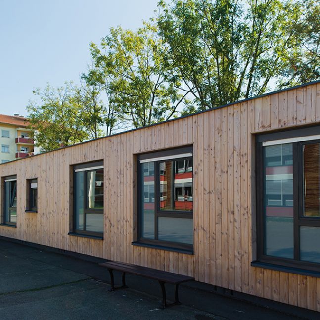 Salas de aula, creches, receções, escritórios e sedes sociais ou locais «sensíveis» (arquivo, exposições, etc.), as nossas realizações respondem com o mesmo nível de excelência e exigência, especialmente com o Progress 2 Fogo, em conformidade com os Eurocódigos. Assim, a par da capacidade de inovar e garantir condições de trabalho ideais, a Algeco também oferece uma vantagem em termos de segurança que nenhum outro interveniente no mercado pode reivindicar. É o nosso orgulho, mas é sobretudo a garantia de permitir que todos evoluam em edifícios elegantes e fiáveis.